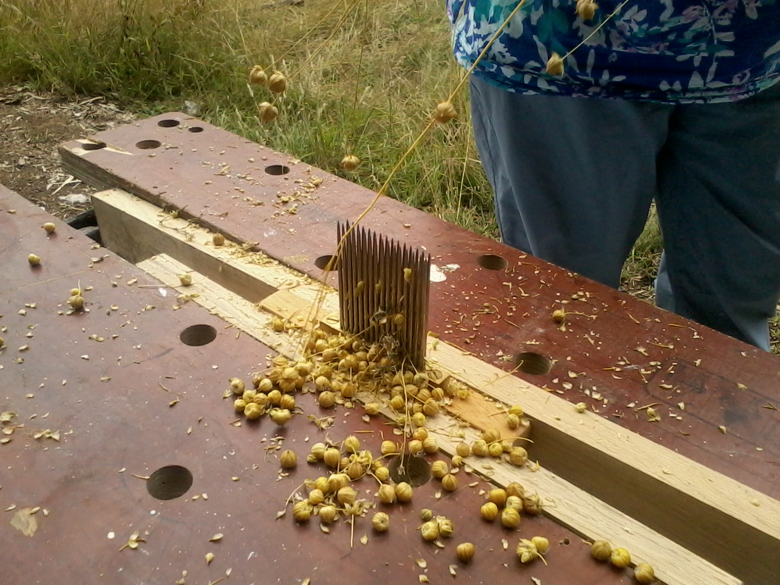 The seed heads are then collected together in a bag (old pillowcase) and either crushed between the fingers or... |